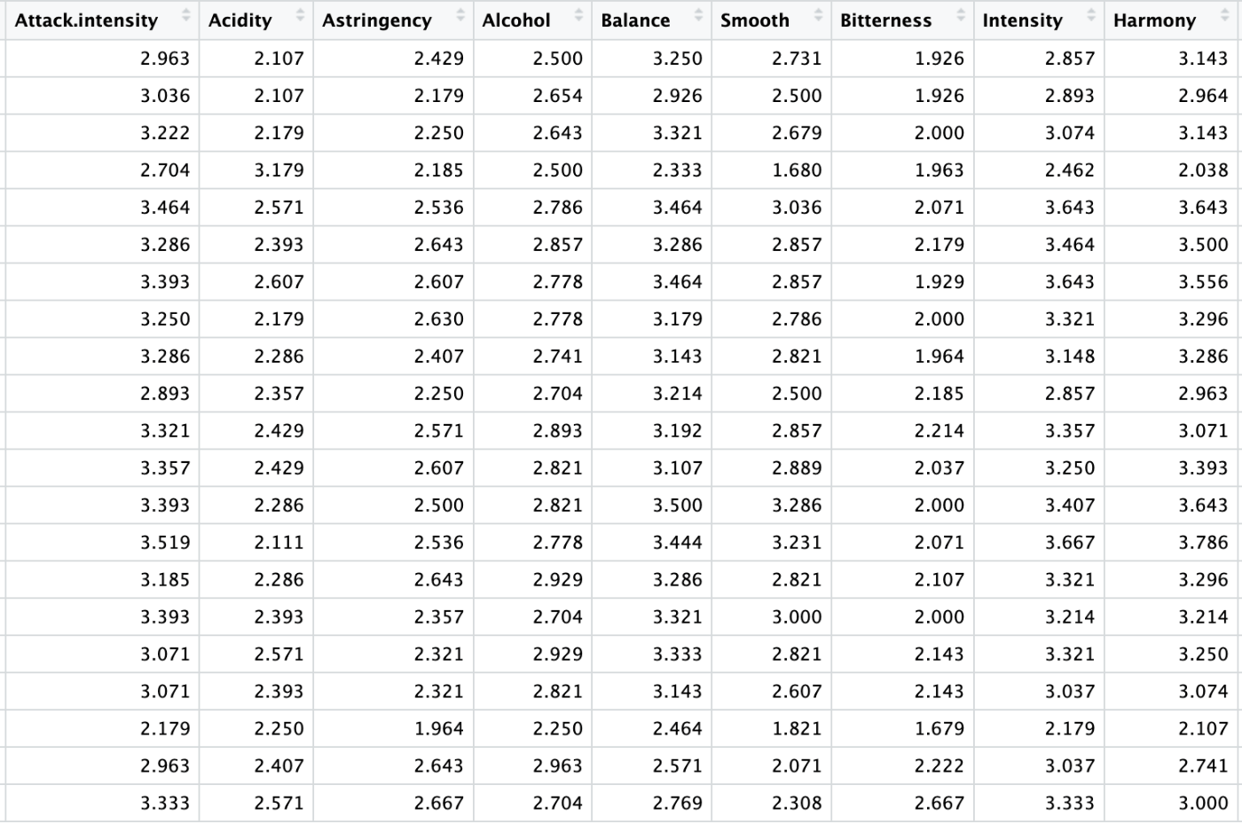 - 第1軸は◯◯intensityが大きく寄与→ワインの「強さ」のようなもの?