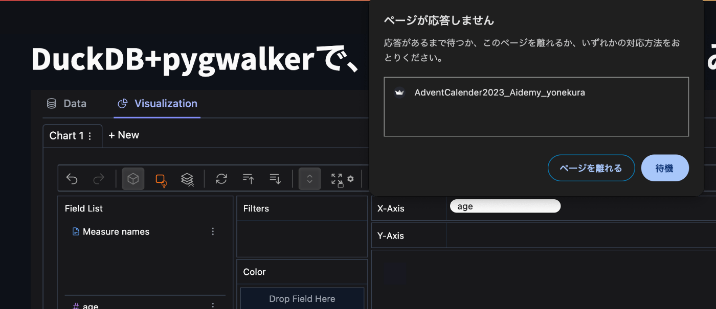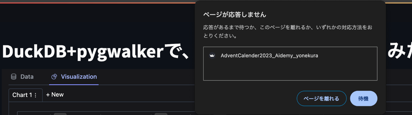 - Streamlit+PyGWalker動かす時でもDuckDBの方が快適さを体感できる