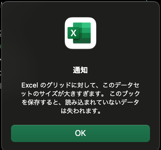 出来上がったデータセットの行数は、エクセルの限界ギリギリの約104万行のデータになります。