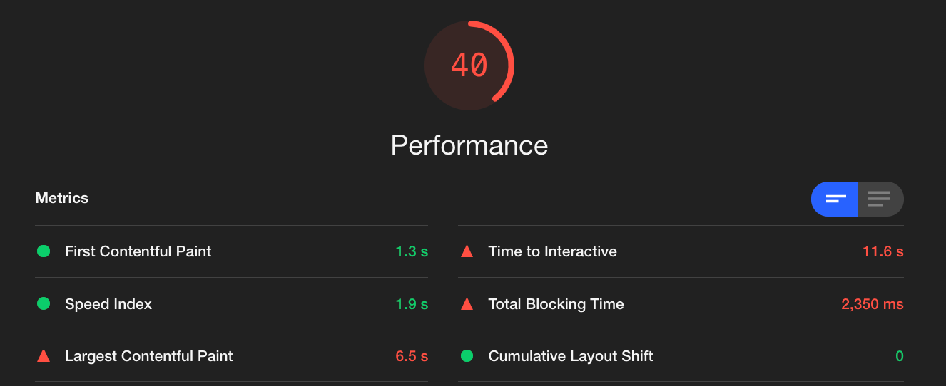 こちらは、とあるサービスのページにおける、微妙なコンテンツ差異の解消前後での、lighthouseスコアの比較。コンテンツ量が多いページで比較すると、このように差が顕著に出る。