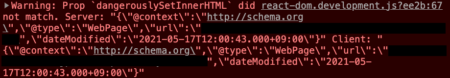 このワーニングが発生しているときは、実は CSR が発生している。たとえ SSG/SSR していてもだ。