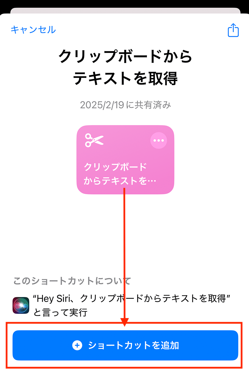 「ショートカットを追加」ボタンからこのショートカットをiPhoneに追加します。