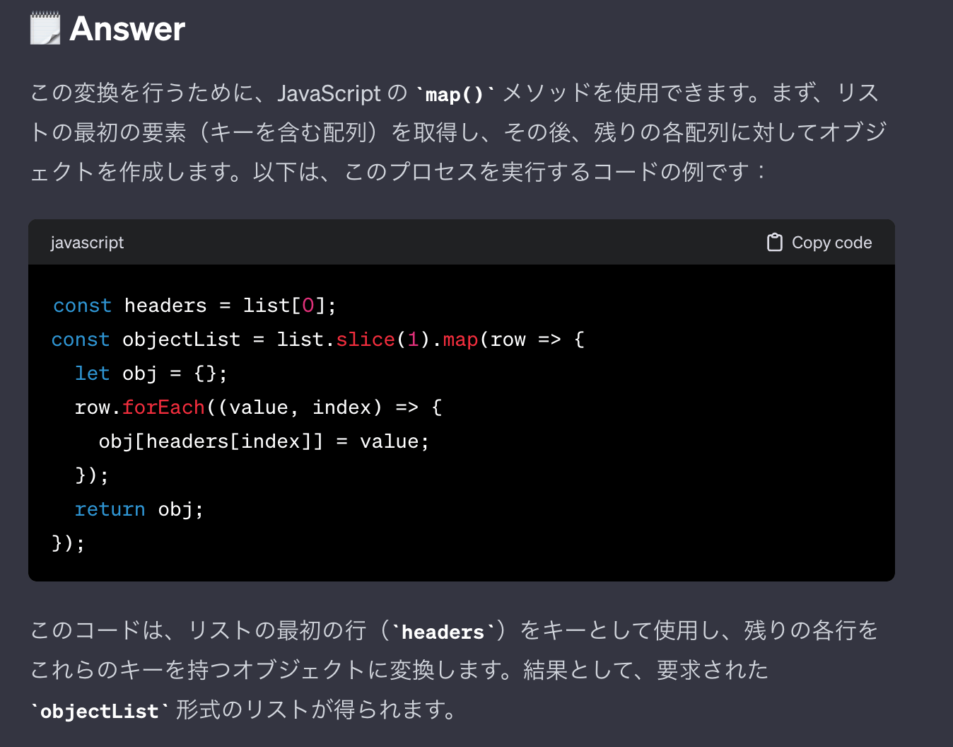 (Codeの変換LogicをChatGPTに依頼している)