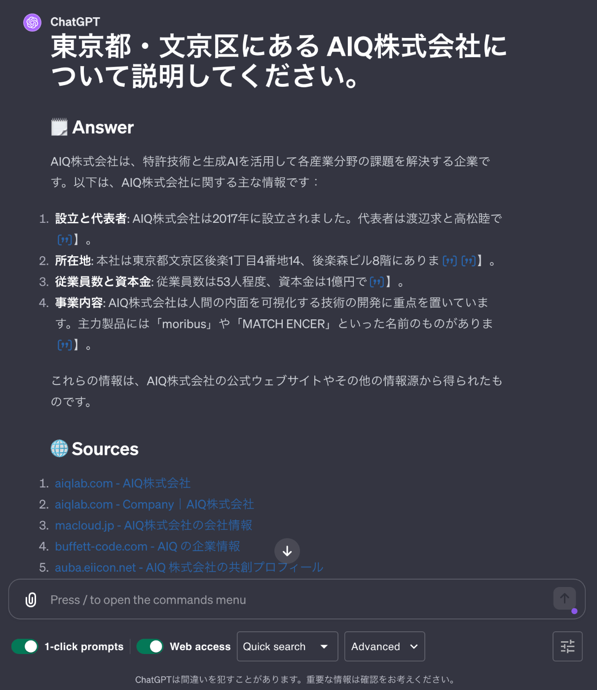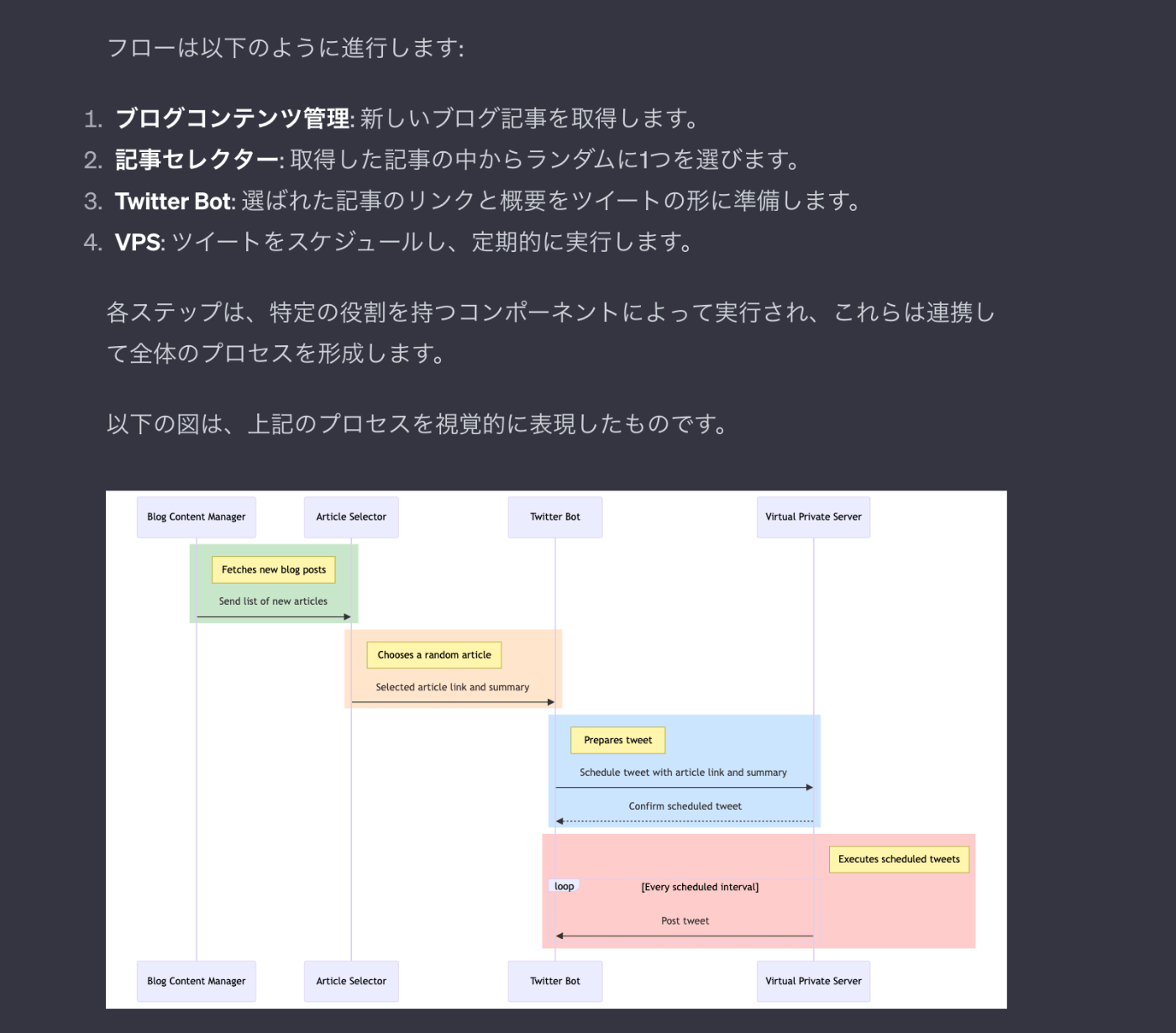 上記のプロンプトに対して、次のような回答が返ってきました。