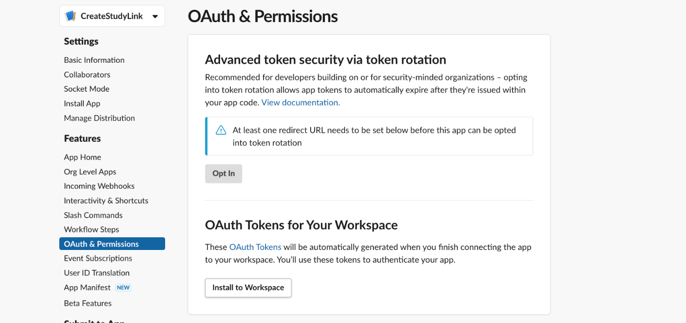 OAuth Tokens for Your Workspace のボタンが活性化するので、