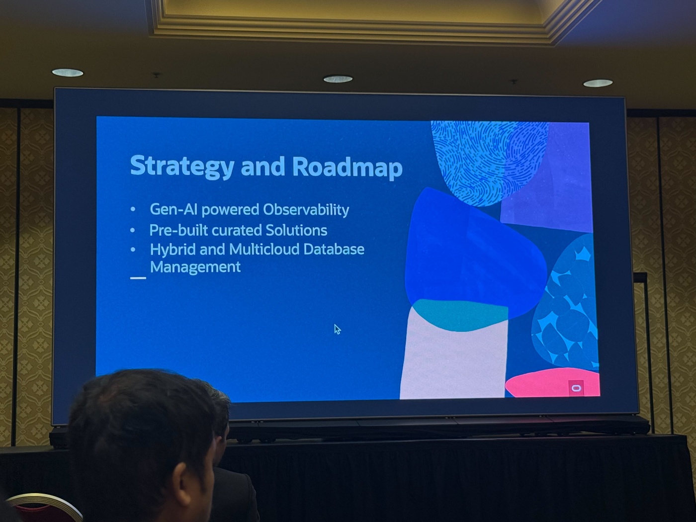 Enterprise ManagerのDatabase performance managementでSQLの不調を見つけたり、マルチクラウドのテレメトリーをOCIに集約することで調査コストを下げたり、runbookをAIで自動化したり…といった具体的なケースについて話をしていて、テーマとして純粋に面白い会でした。