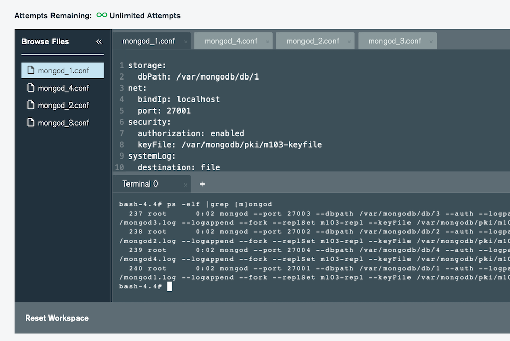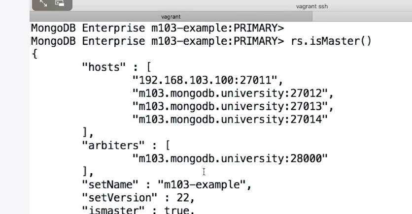 Note: In the video lecture, we used the old hostname "m103.mongodb.university" which has been changed to "m103" . We have updated all of the following commands accordingly.