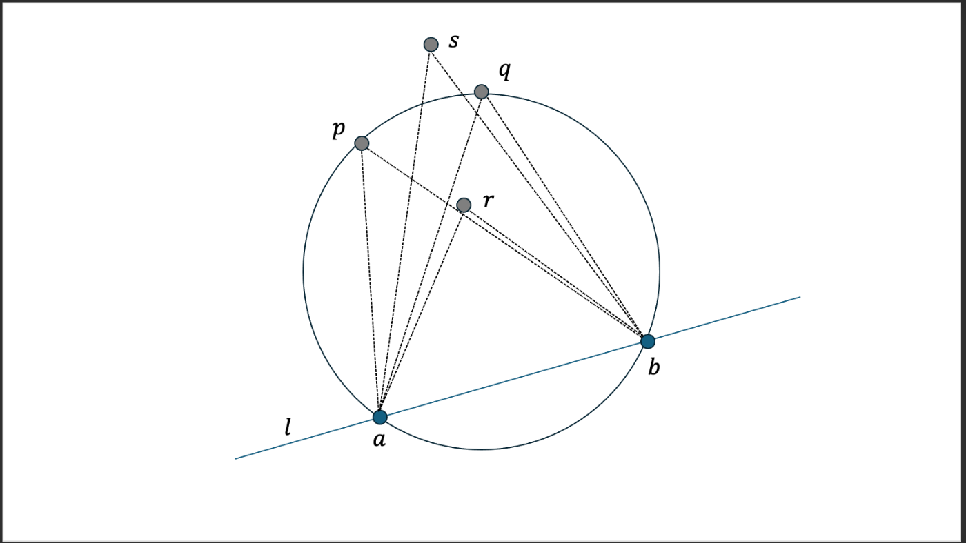 つぎに,どのような条件を満たすときに三角形分割が角度最適になるのか見ていく. 情報として,ターレスの定理を導入する.