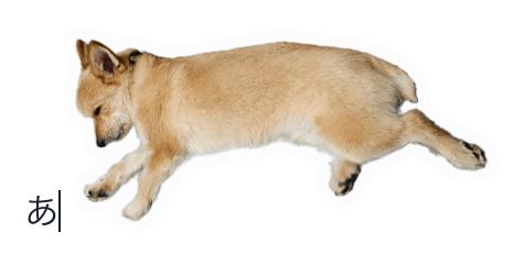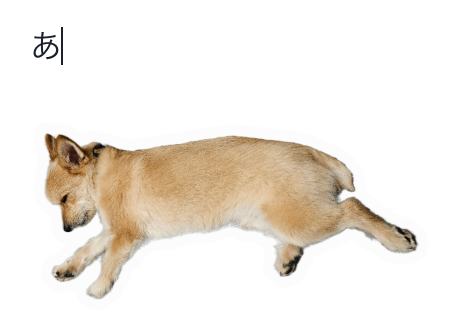 「あああああ」というテキストの後ろに画像がくっつく。