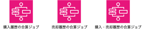 例えば、0 時に購入履歴の合算ジョブ → 終了後売却履歴の合算ジョブ → 終了後購入・売却履歴の合算ジョブといった連携したジョブを Step Functions で実装する場合、特に何も考えずに組むとジョブごとに独立したワークフローが三つ組まれることになります。