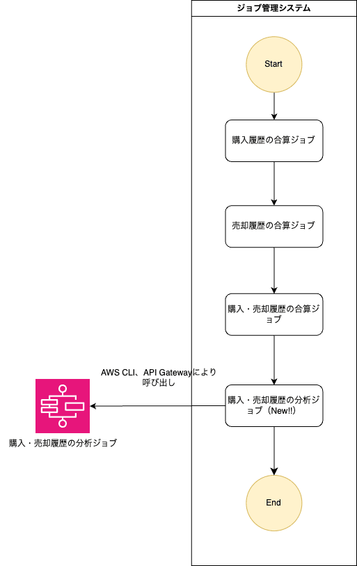 このワークフローの起動の際に AWS CLI や API Gateway を ジョブ管理システム から利用することになります。