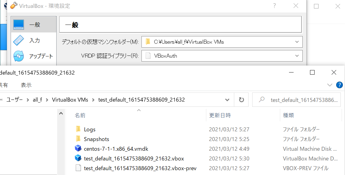 しかし、VirtualBoxの『VirtualBox VMs?』が初期設定ではCドライブになる事に気付かずインストールしてしまった。