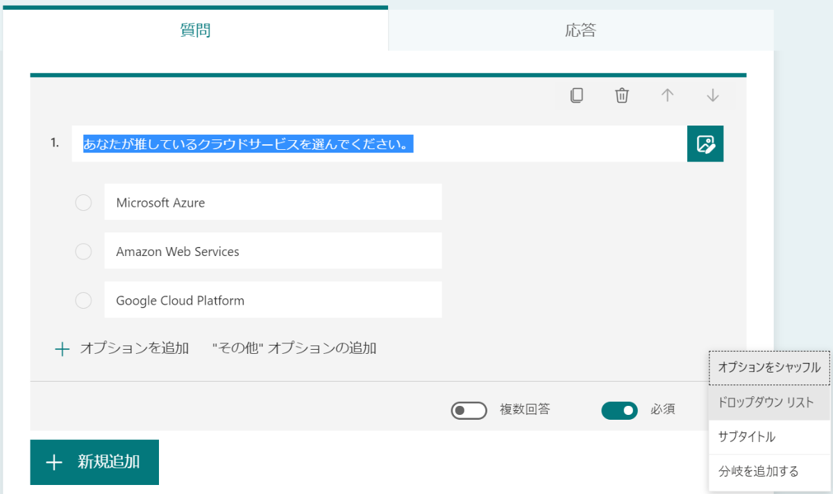 第1問は、「あなたが推しているクラウドサービスを選んでください。」と入力しました。