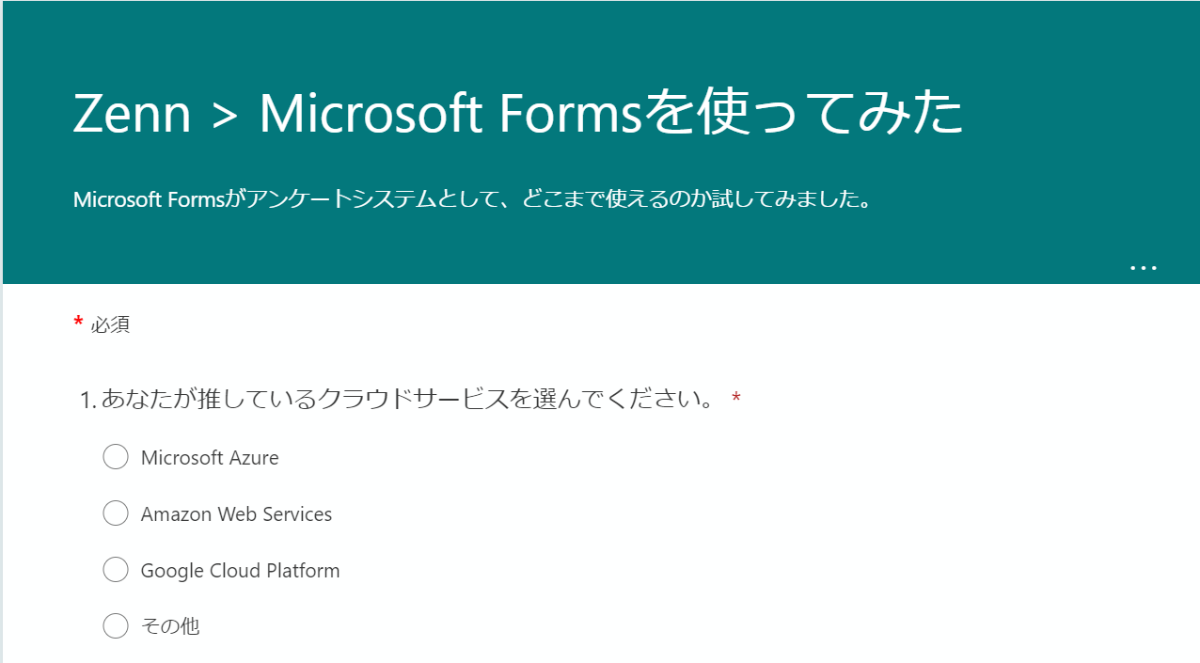 Office 365が提供する、アンケート作成ツールであるMicrosoft Formsを知りました。
