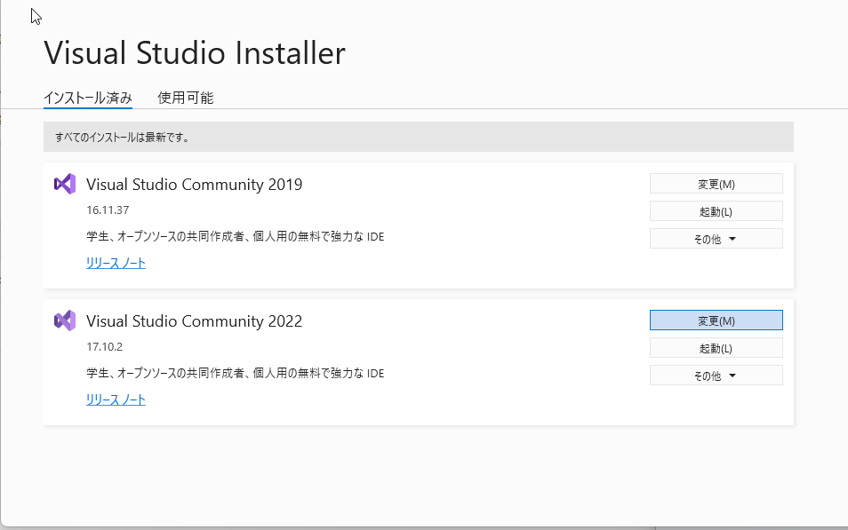 Visual Studio 2022を Visual Studio Installer経由でインストール