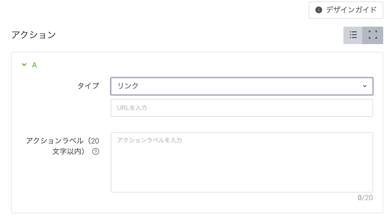 アクションはリンクタイプを選び、LIFFのリンクを入力します。