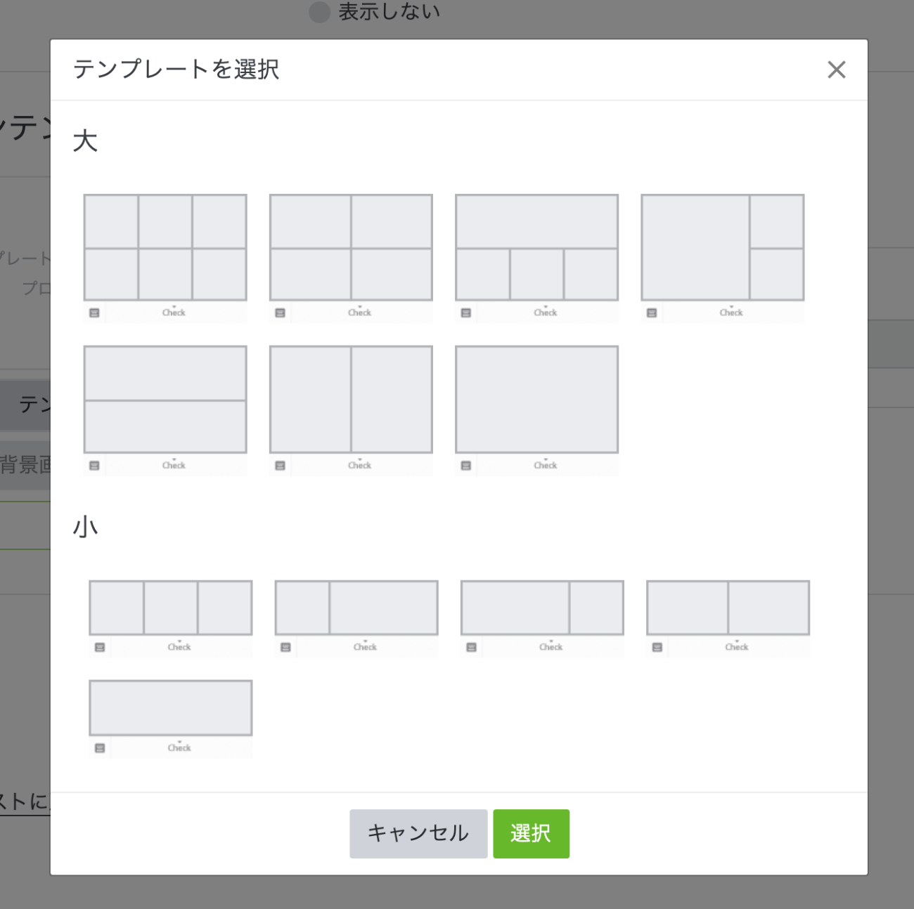 コンテンツ設定のテンプレートの大の右下を選択します。