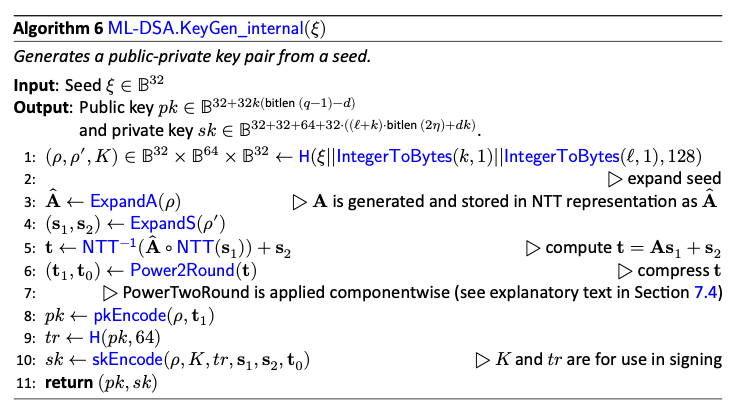 続いてFIPS 204に基づくML-DSAアルゴリズムを紹介する。