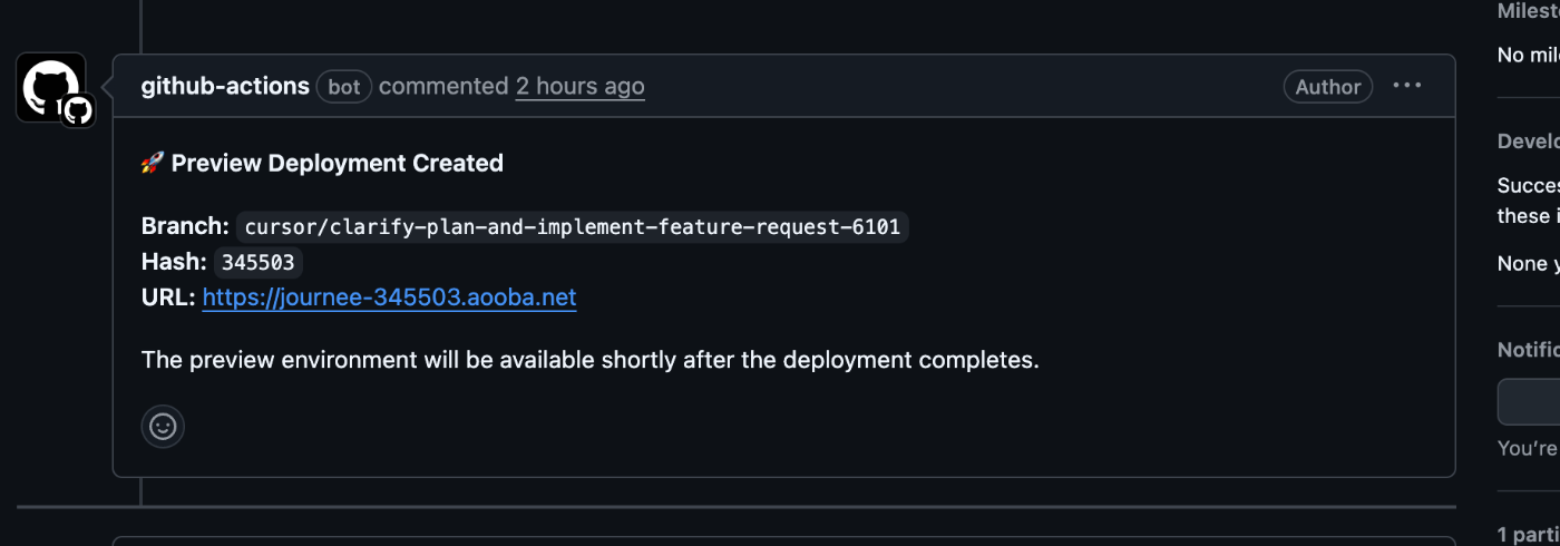 - PRへの自動コメント: GitHub CLIでURLを通知