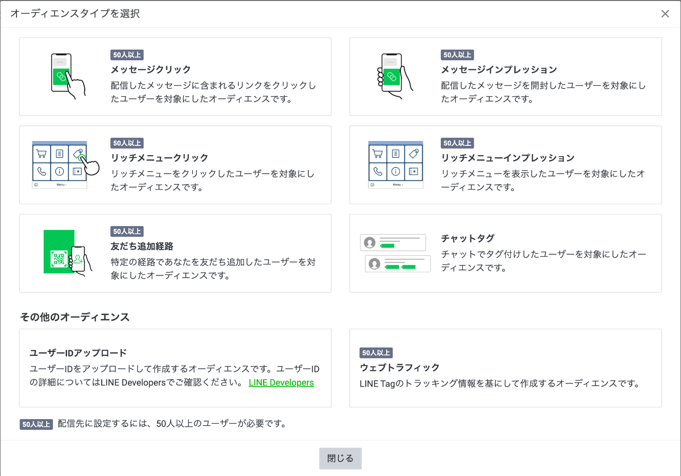 ユーザの属性によってメッセージを出し分ける機能として「オーディエンス」があります。