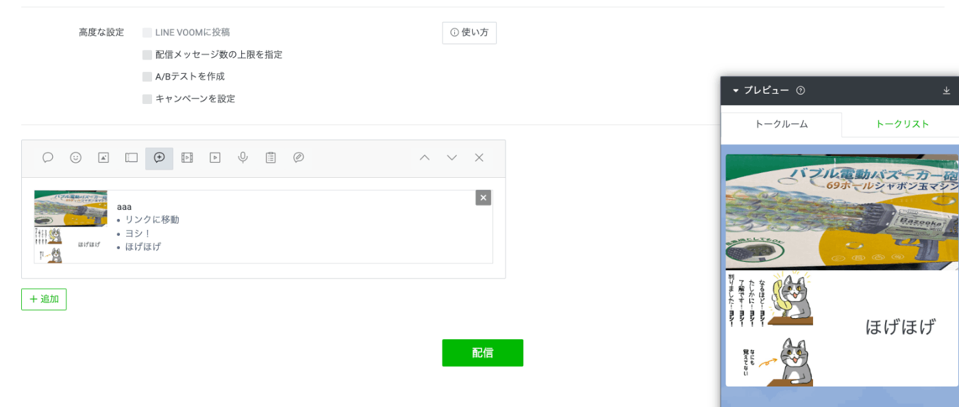 - 複数情報をまとめたカルーセル形式のメッセージを配信する
