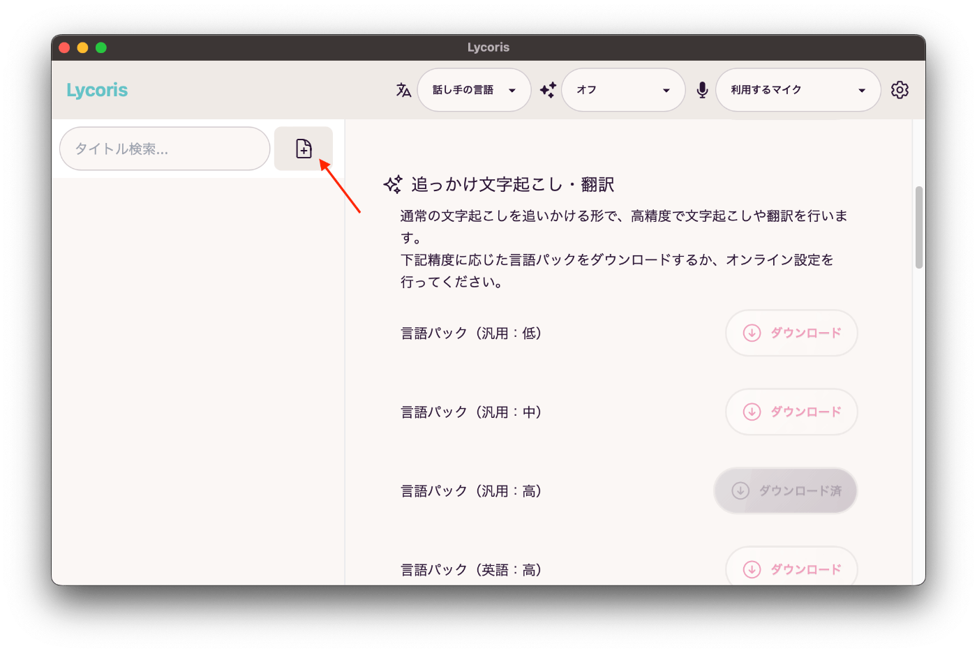 設定内で、認識したい言語(話し手の言語)の言語パックをダウンロードします