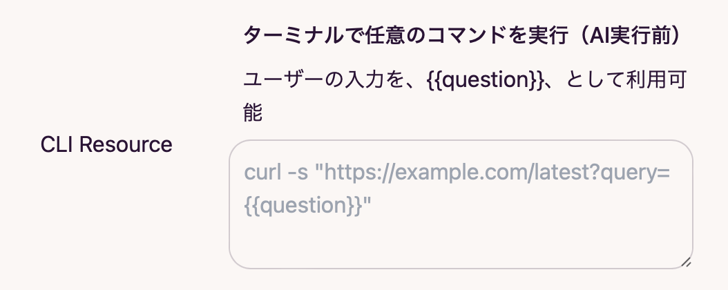 事前にAIに渡したい情報をcurlコマンドなどで、取得しておくといった使い方が可能です。