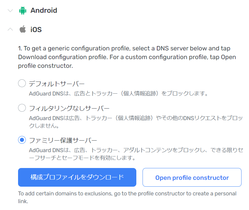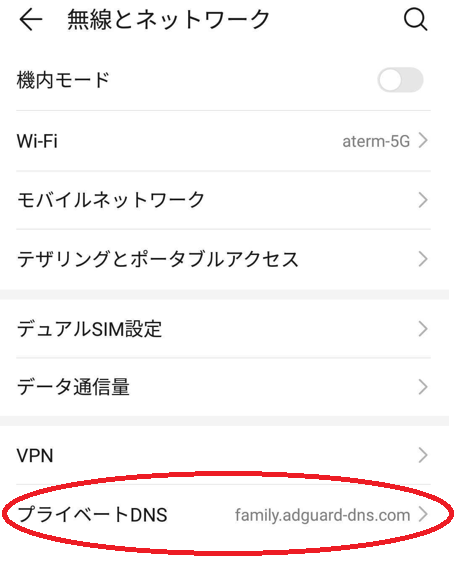 スマホの設定でセーフサーチを提供しているDNSに接続するようにします.