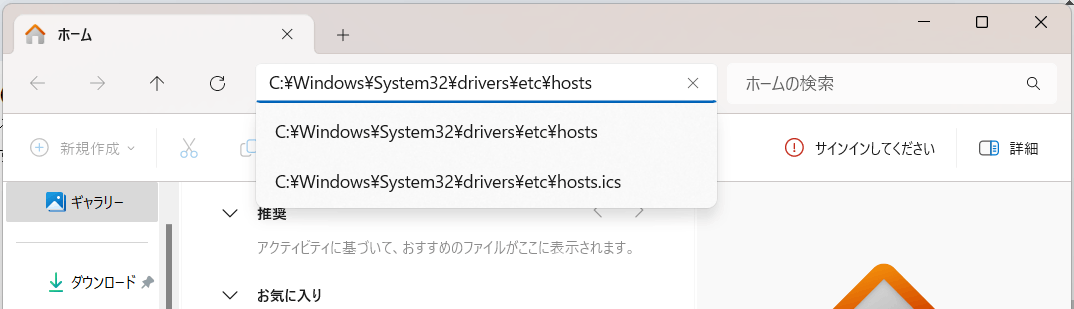 ファイルエクスプローラーなどから以下のパスを入力することで開きます.(メモ帳などで開きます)