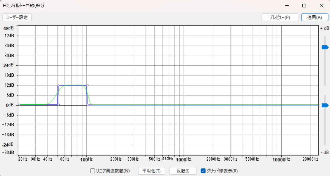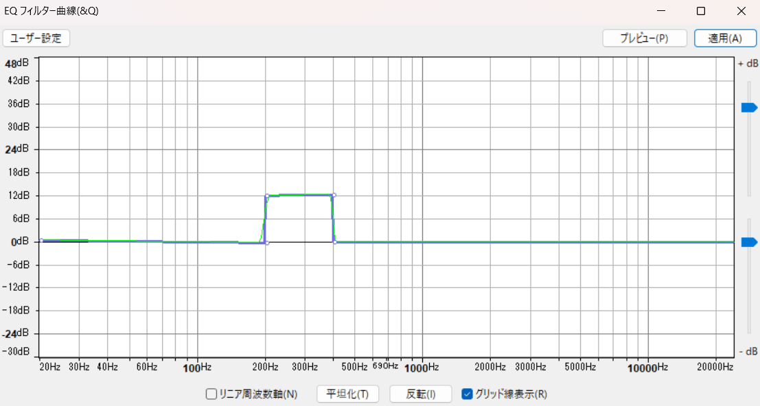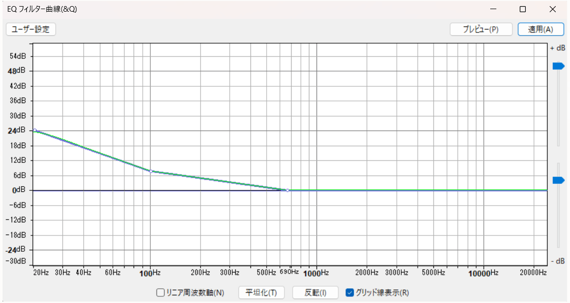 グラフの上げ幅を24dB以上とすると音が割れることがあるので注意です.