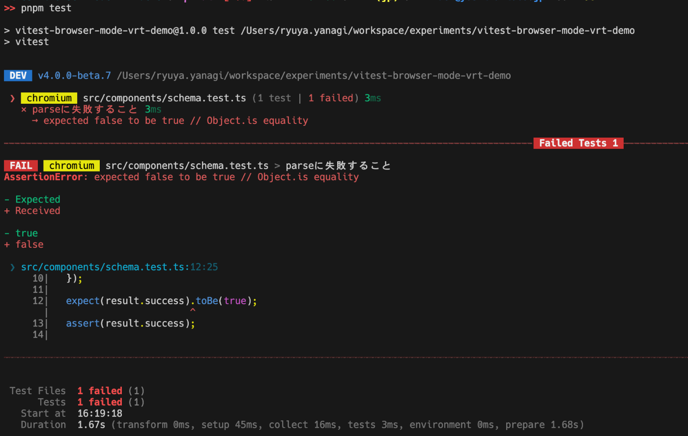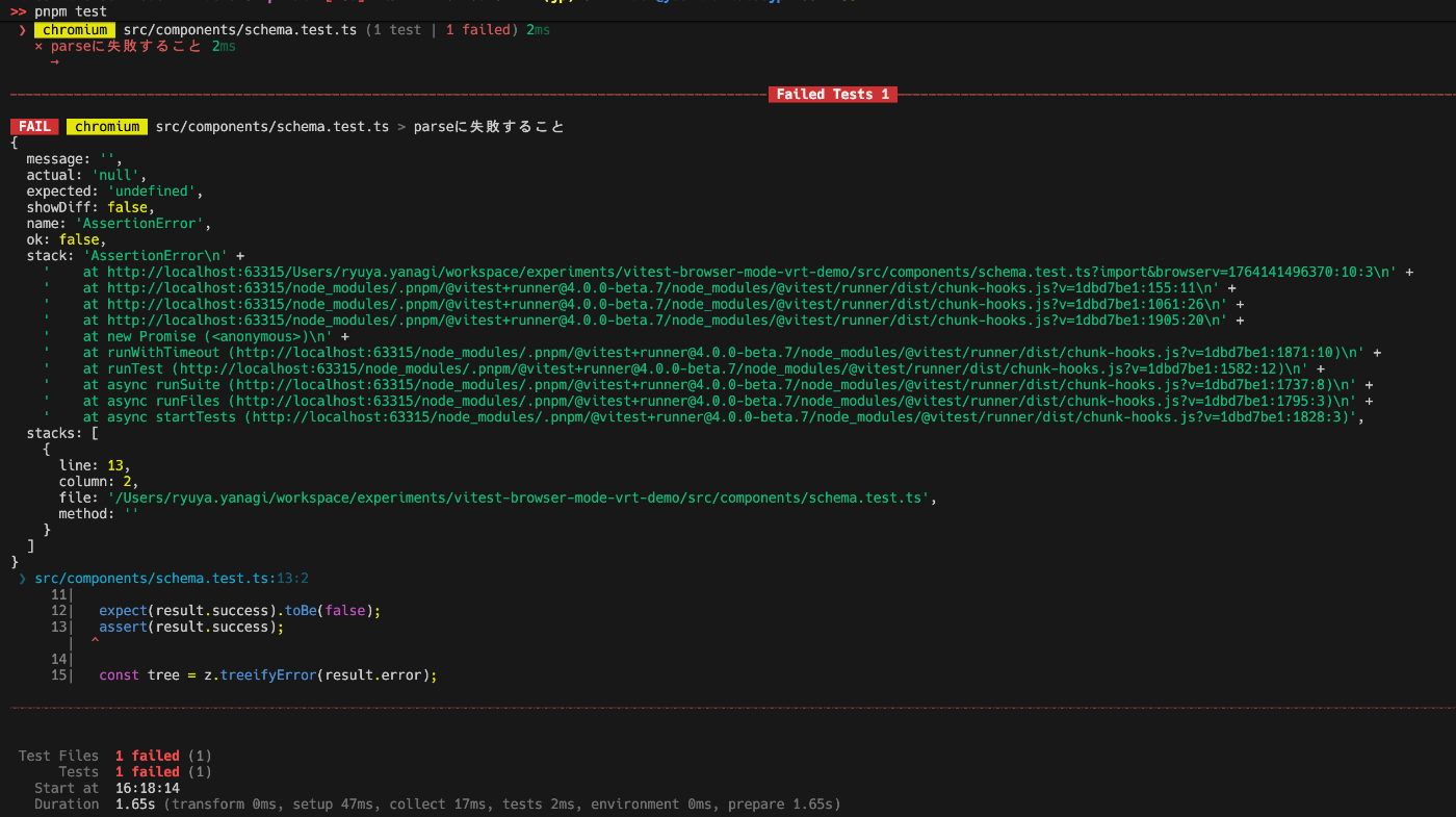 そのため、assert でエラーが発生しまう可能性がある場合は前段で expect を挟むのが良いでしょう。以下は expect が失敗した時のスクショです。