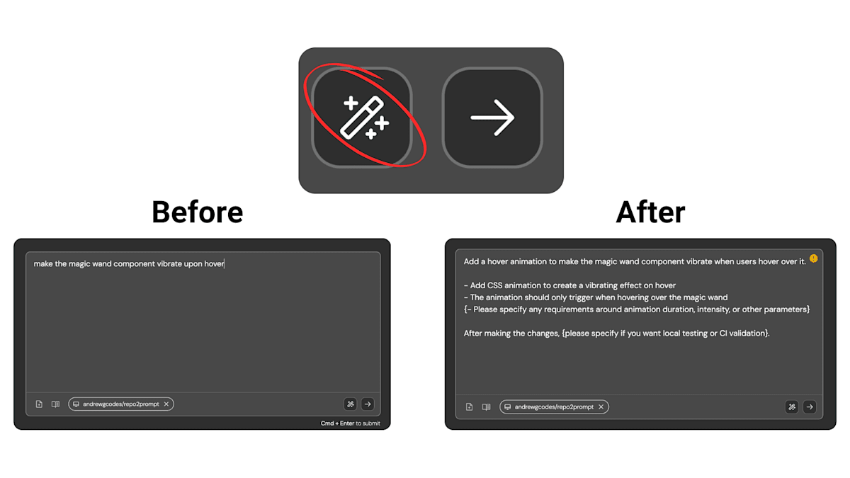 セッションを作成する際にプロンプト改善ボタンを試してみてください(フィードバックを表示するには黄色の警告アイコンをクリックしてください)。