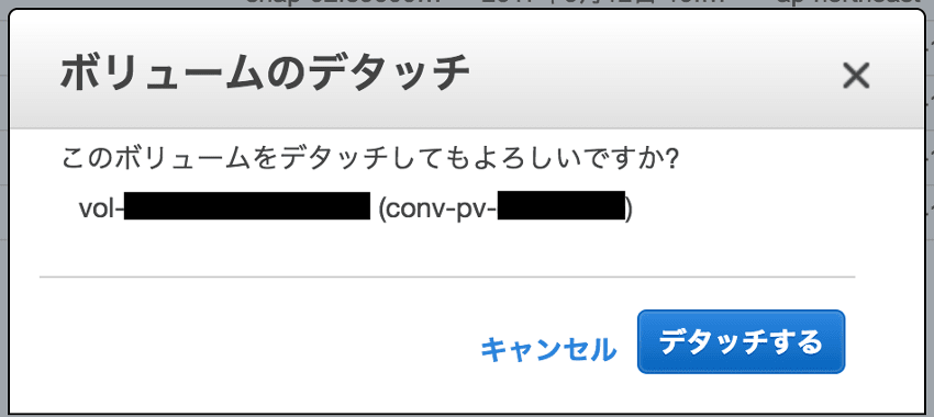 コンソールから conv-pv-<インスタンス名> と conv-hvm-<インスタンス名> をデタッチする。