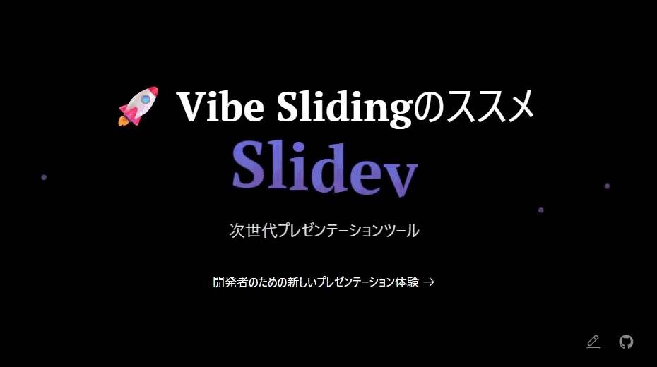 結論から言うと、想像以上にリッチなスライドを簡単に作ることができました。この記事ではvibe sliding