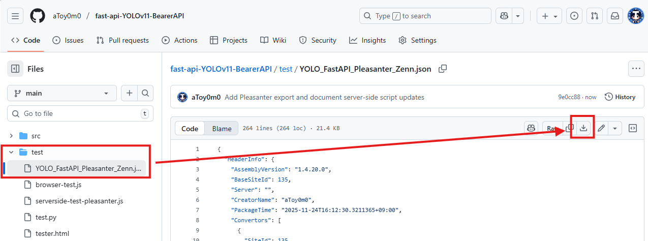 前回記事で使ったリポジトリのtestフォルダにアップロードしたものを使います。