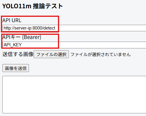 - APIキー (Bearer):「.env」の「DETECTION_API_KEY」に設定したキー