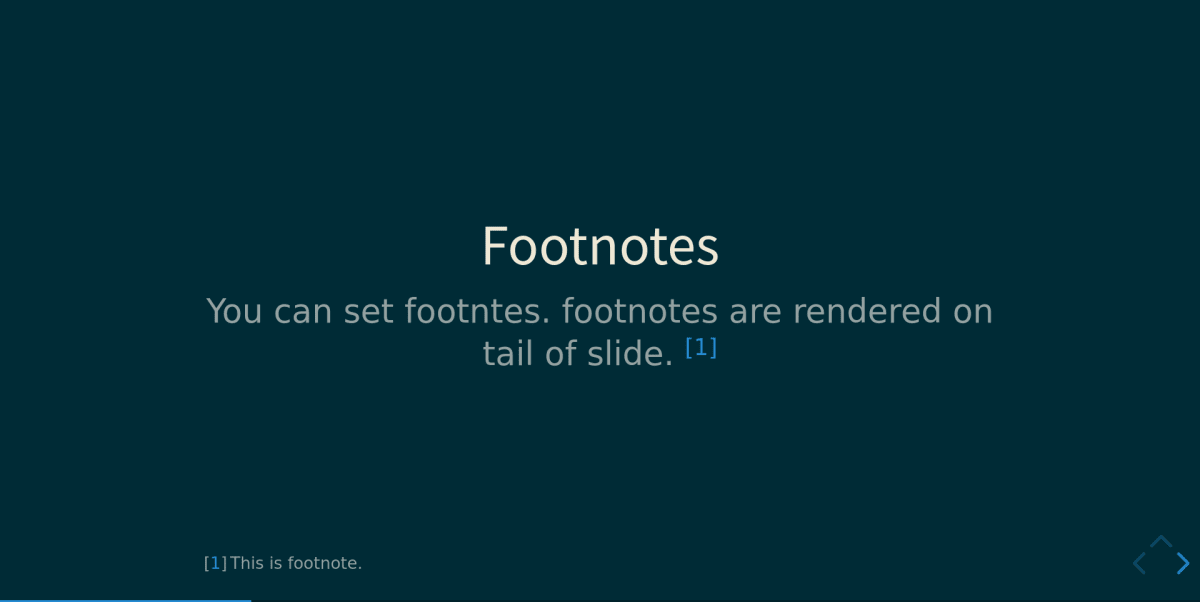 ここからが本題となるのですが、特にこれといった調整をしないまま脚注記法を含むreStructuredTextソースからReveal.jsプレゼンテーションをビルドするとどうなるでしょうか?