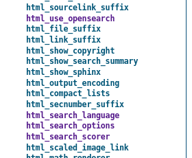 ちなみにですが、いずれも html_ で始まるため、HTMLビルドに関するものだけであることが分かります。