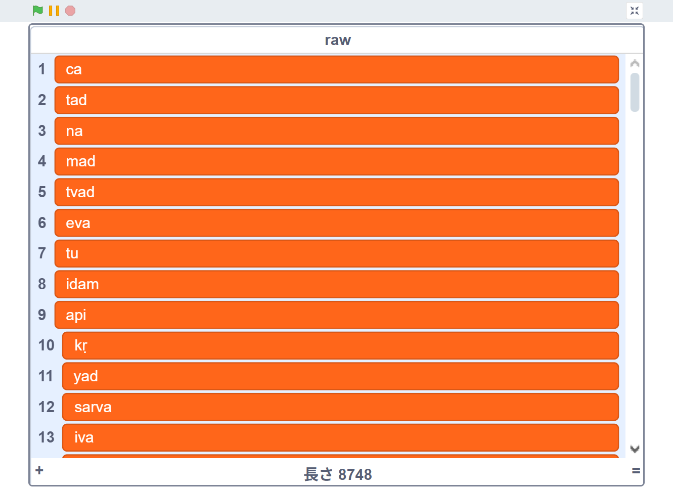 その後、ポップアップ「どの欄を使いますか」には4を入力し、IAST転写[3]された8748単語をリストに格納します。