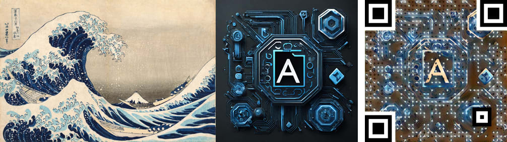 下の画像は冨嶽三十六景をスタイル画像として自分のアイコンをQRコードにしてみた画像です。くすんだ部分と似ていないため変な風になっていますね。