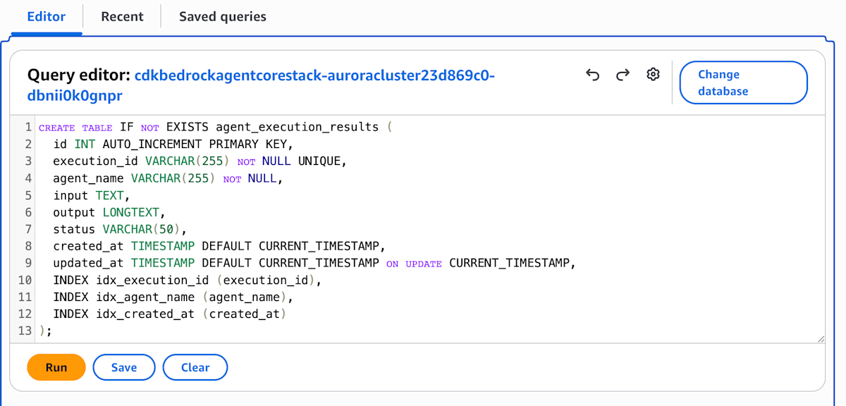 クエリエディタで SELECT するとデータを取得することができました。AgentCore Runtime から Aurora への書き込みもできています。