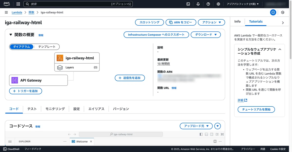 今回は、API Gatewayからリクエストがあった際に、Lambdaで関数を実行し、ランダムに選んだ駅名をHTMLで返すという構成にした。