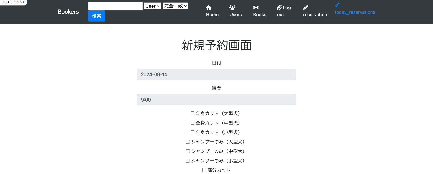 予約システム 予約する時にメニュー選択できるようにして、マイページに内容を確認できるようにする。