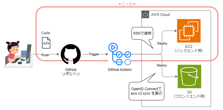 今回は GitHub Actions でバックエンドのソースを AWS EC2 へ、フロントエンドのソースを AWS S3 へデプロイする CI/CD 環境を構築しましたので、その備忘録です。