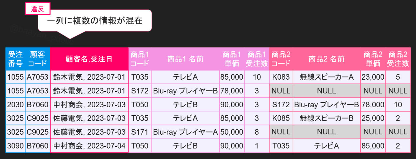 2.1.1.3. 1列で複数の情報をもたないようにした例