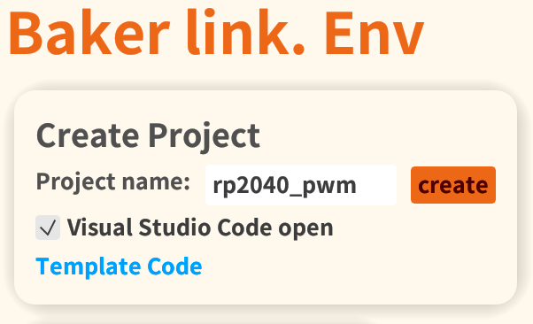 Baker link. Envを起動し、プロジェクト名を入力、createをクリック、プロジェクト保存先のフォルダを選択してください。