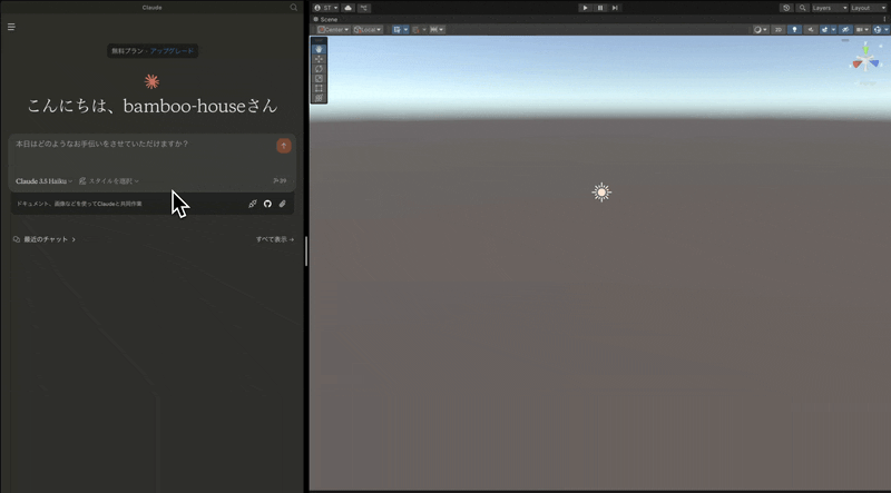 以上で、Unity+MCP(Claude)で簡単なシーンを作成できました!