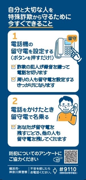 - 留守番電話を設定すると犯人が嫌がって電話を切るという利点を明確にし、行動変容を後押しする。