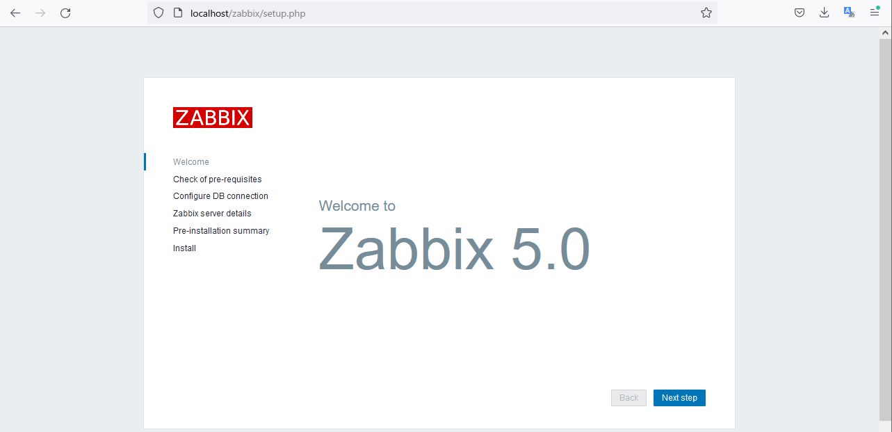 http://localhost/zabbixにブラウザからアクセス