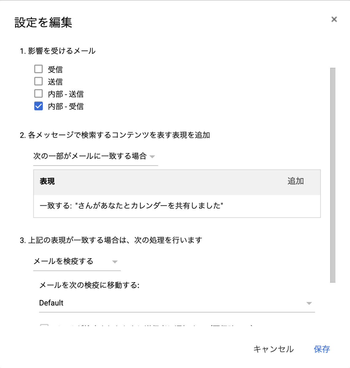GoogleWorkspace:特定ルールに合致したメールを遮断したい